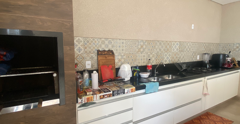✅ Ampla área gourmet com churrasqueira e piso porcelanato